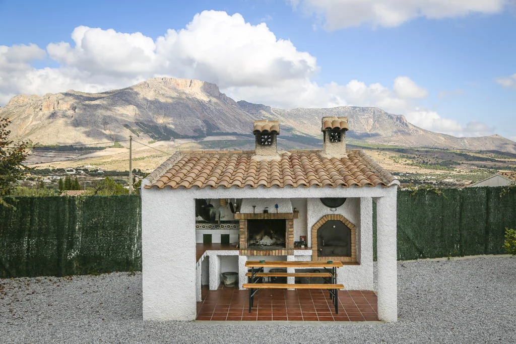 Acogedor cortijo independiente, situado en un bello paraje con vistas al monumento natural de la Comarca de los Vélez (montaña La Muela), con capacidad para 8-10 personas. 4 dormitorios, 3 baños, salón-comedor con chimenea, cocina completamente equipada (horno, microondas, lavavajillas, lavadora, tostadores, sandwichera, cafetera, batidora, etc.). Calefacción central. TV en todas las habitaciones, WIFI. Barbacoa, PISCINA y piscina infantil, mobiliario exterior (sillas, mesas, hamacas), equipamiento para bebés (cunas, tronas, etc.), recinto vallado, fácil acceso asfaltado hasta la casa. A tan solo 10 minutos en coche de Vélez-Rubio o Vélez-Blanco. Admite mascotas. Incluida leña, ropa de cama y baño y toallas de piscina