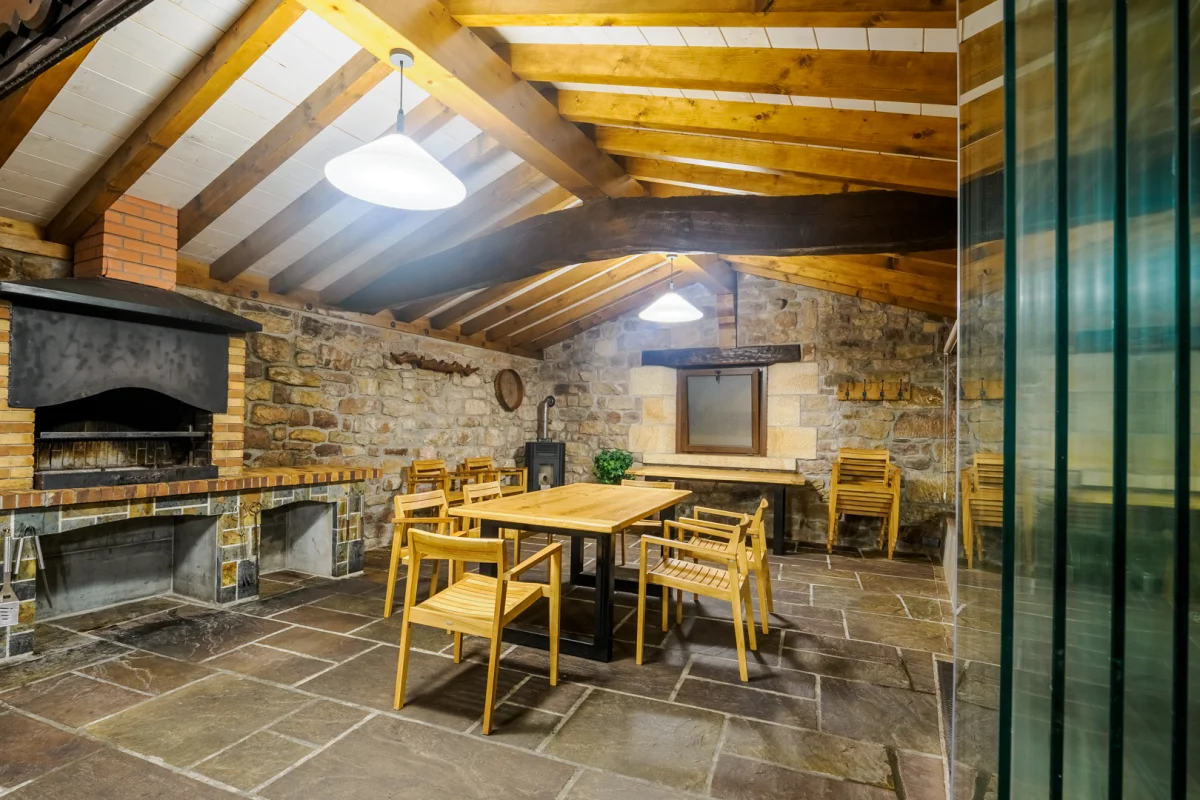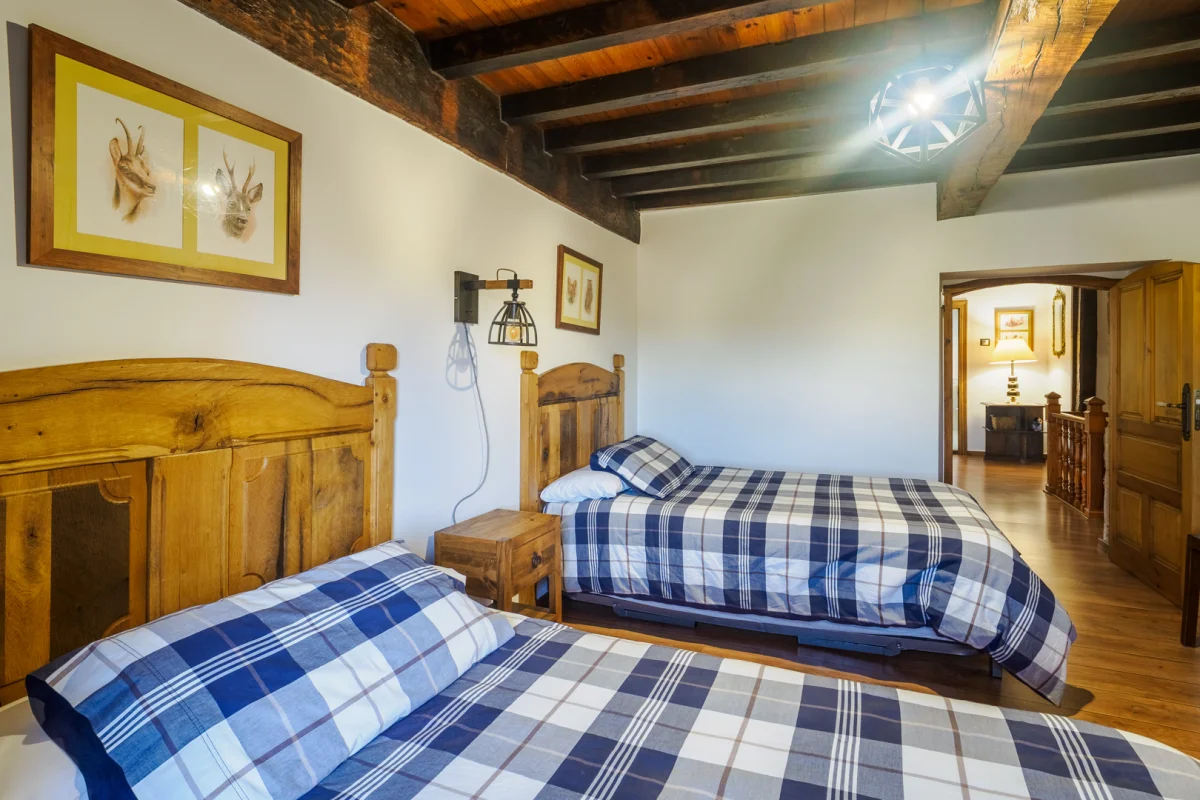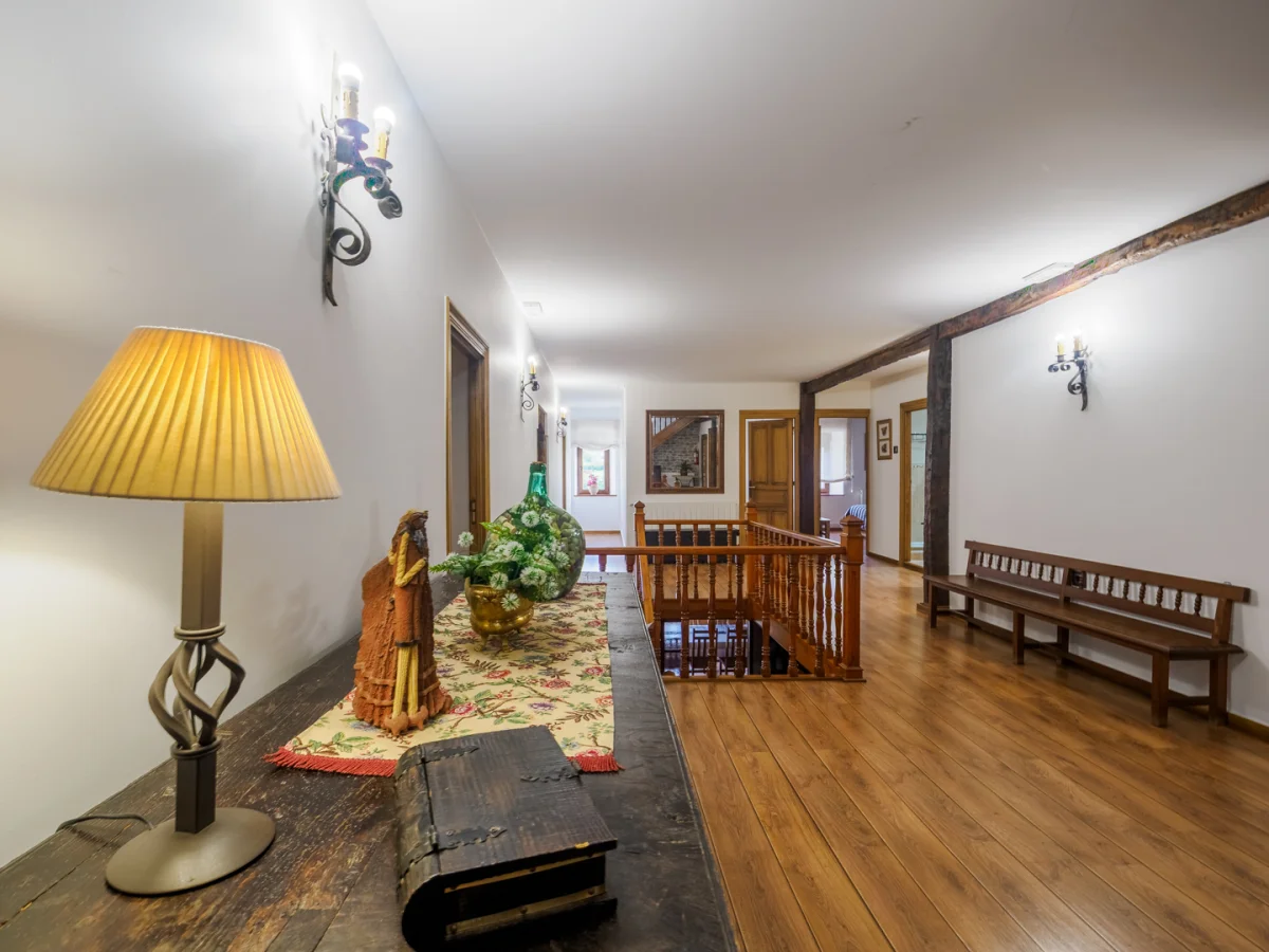 Su elemento principal es una casa tradicional totalmente reformada, con su cocina típica, salón comedor, sala de estar, 4 baños, 8 habitaciones y un ático de 200 metros cuadrados totalmente diáfano. Cuenta también con dos aparcamientos privados y una parcela de 2000 metros cuadrados completamente independiente. Está equipada para albergar a 20 personas, con amplio espacio para el disfrute y el esparcimiento, tanto en el interior como en el exterior.
