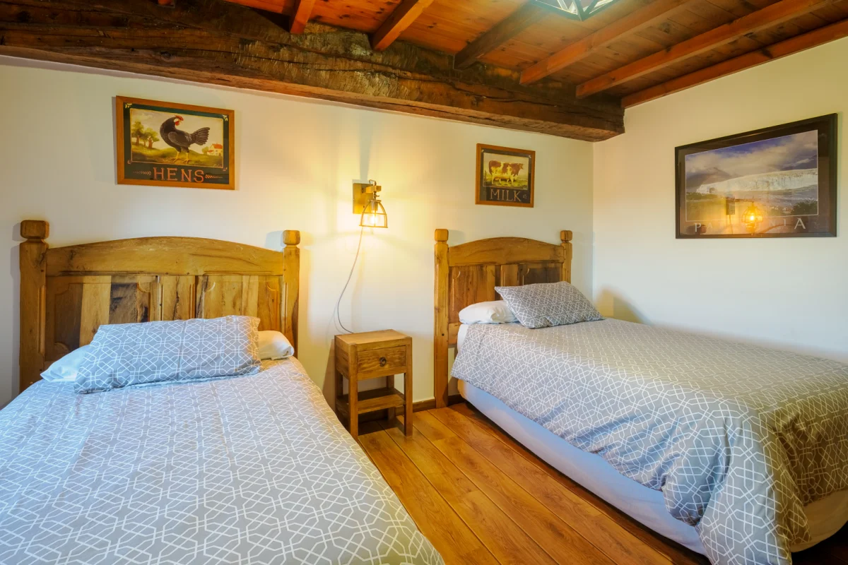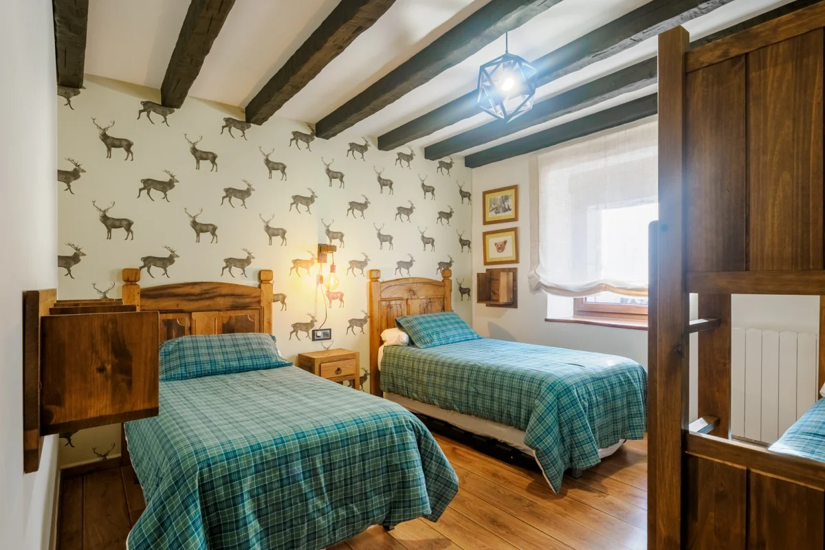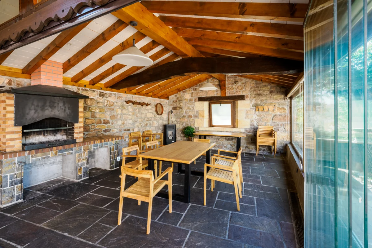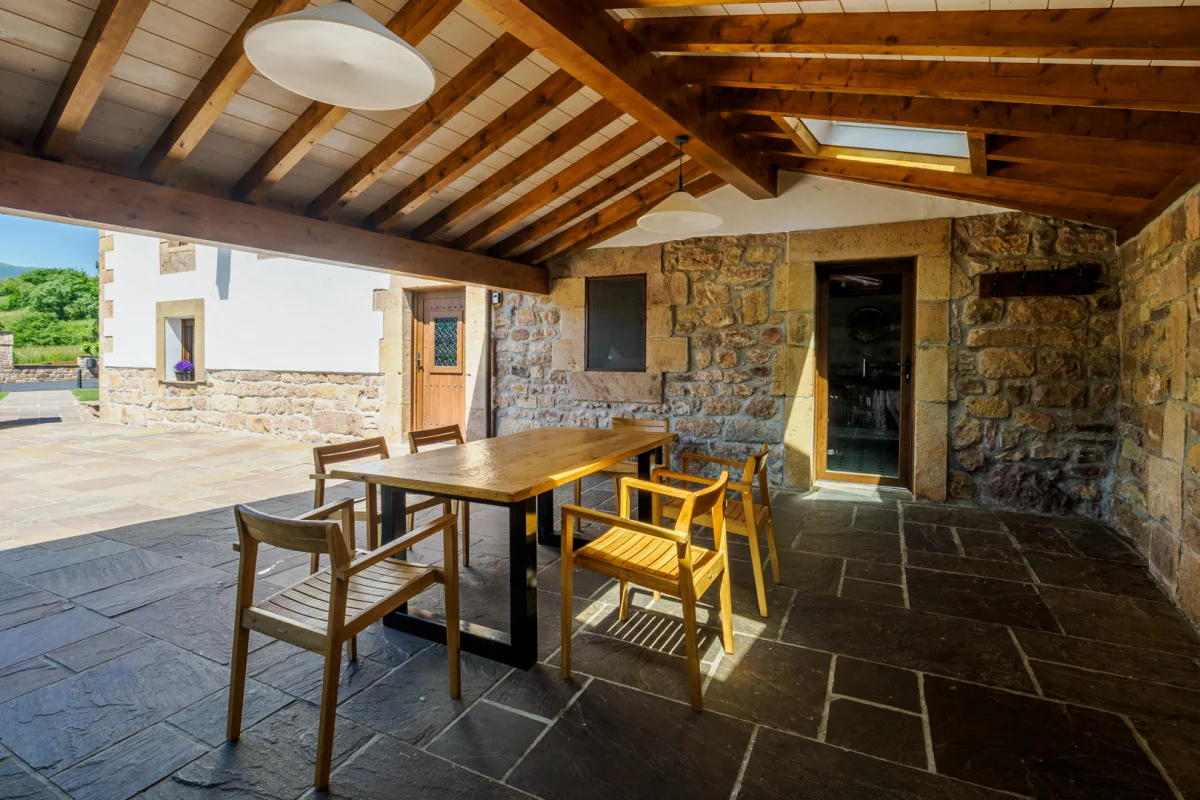Su elemento principal es una casa tradicional totalmente reformada, con su cocina típica, salón comedor, sala de estar, 4 baños, 8 habitaciones y un ático de 200 metros cuadrados totalmente diáfano. Cuenta también con dos aparcamientos privados y una parcela de 2000 metros cuadrados completamente independiente. Está equipada para albergar a 20 personas, con amplio espacio para el disfrute y el esparcimiento, tanto en el interior como en el exterior.