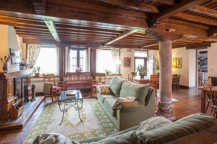 También tiene el una barra de bar muy bonita y una chimenea en la zona de salón que procede de un castillo escocés y que hace que este salón transmita unas vibraciones muy especiales.
