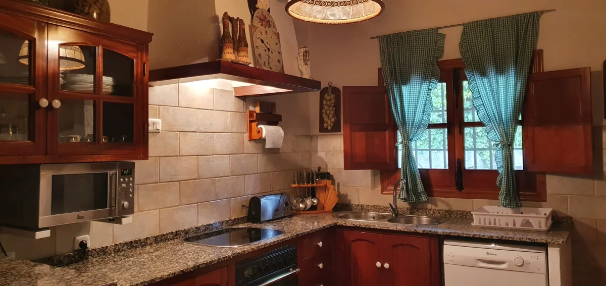 En el exterior disfrutarás de una terraza con acceso desde el salón y barbacoa, ideal para comidas largas y atardeceres sin prisa. Dentro te espera un salón-comedor con dos ambientes y gran chimenea de leña para encender conversaciones (y noches de película con TV de pantalla plana). La cocina independiente está equipada para que nada se te resista.