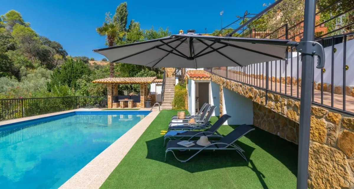Espacios: Piscina con hamacas y solarium, zona chill out al lado de la piscina. Piscina de cloración por electrólisis completamente natural. Barra americana y zona ajardinada, jardín de juegos infantiles con cama elástica, tobogán, casita de juegos y banco para los niños, porche con un estanque lleno de carpas japonesas. Además, dentro de la propia finca Villanatura se encuentra un sendero de 3 Km totalmente señalizado y adaptado que cuenta con 2 espacios de picnic para almorzar y 4 miradores para poder observar tanto los alrededores de la zona, como el Parque de Sierra Cazorla Segura y las Villas, durante el recorrido se podrán interpretar plantas de todos los tipos que hay en la zona y con suerte se podrán ver águilas, ardillas, zorros, etc.