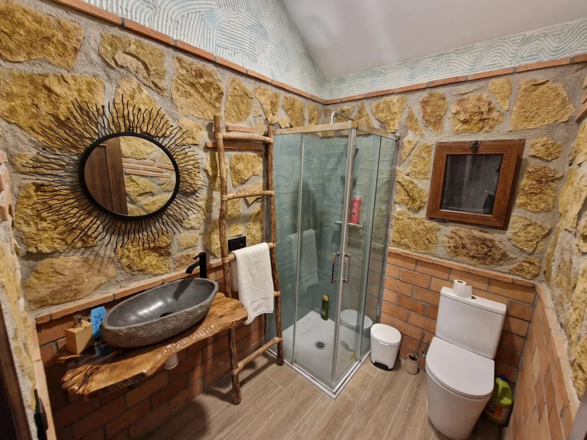 Con capacidad para 31 personas, esta casa rural ofrece todo lo necesario para una estancia cómoda y relajante. Dispone de 11 habitaciones, 5 baños completos y 2 baños adicionales, un amplio salón comedor con chimenea y una cocina equipada con barra americana. La casa cuenta con aire acondicionado y aerotermia, además de todos los electrodomésticos necesarios: cafetera, horno, microondas, nevera de gran capacidad, lavavajillas y más. También dispone de 2 televisores, uno de ellos Smart TV, y 3 zonas de parking gratuitas, incluyendo espacio para bicicletas.