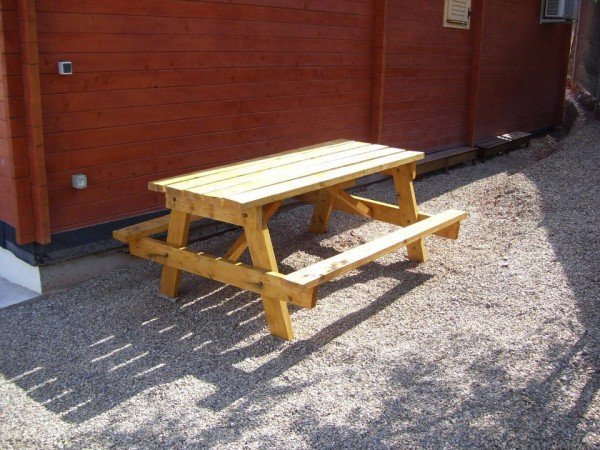 Acogedor apartamento de reciente construcción (febrero de 2011) fabricado en madera con un espacio útil de 65 m2 instalado en una finca de 400 m2 de los cuales parte de ellos se dedican a una zona de juegos (tenis de mesa, bolos, petanca etc.) y el resto a zona ajardinada con mesas exteriores y barbacoa.