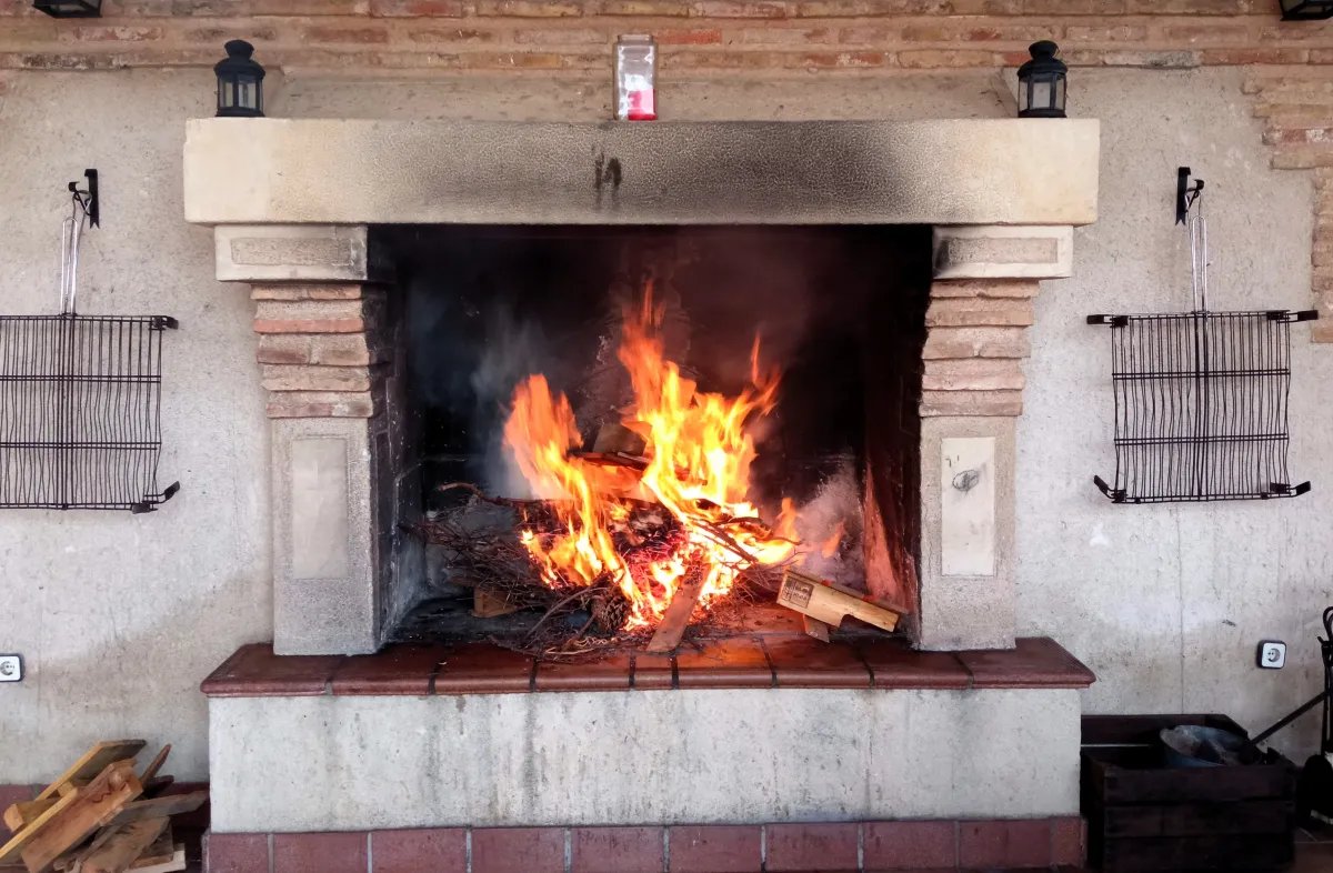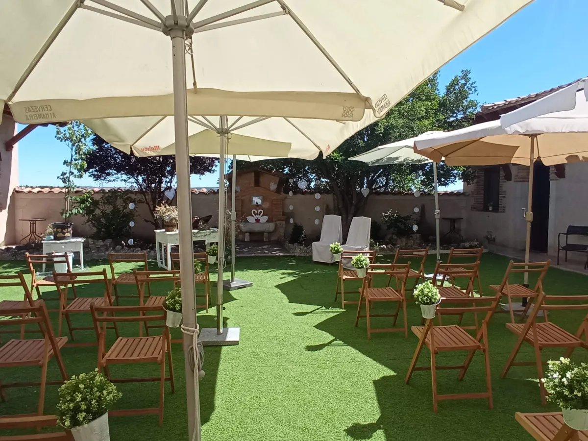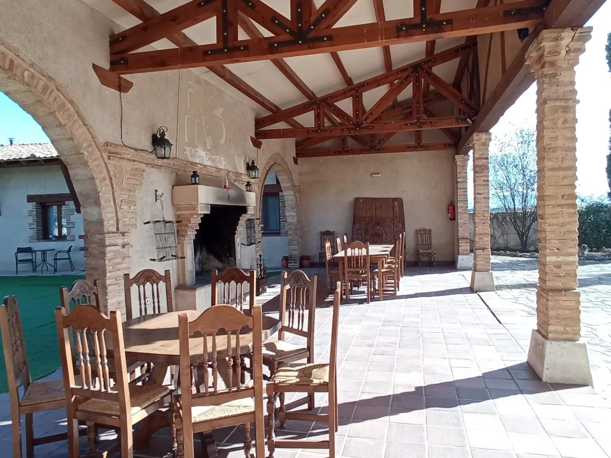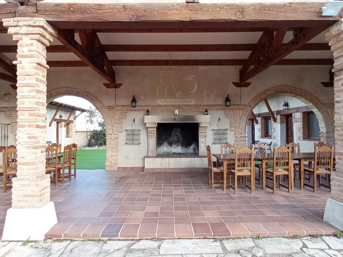 Entre ambos espacios, se encuentra la zona porticada que alberga la gran barbacoa con mesas y sillas para disfrutar de este entorno tan privilegiado y tranquilo.