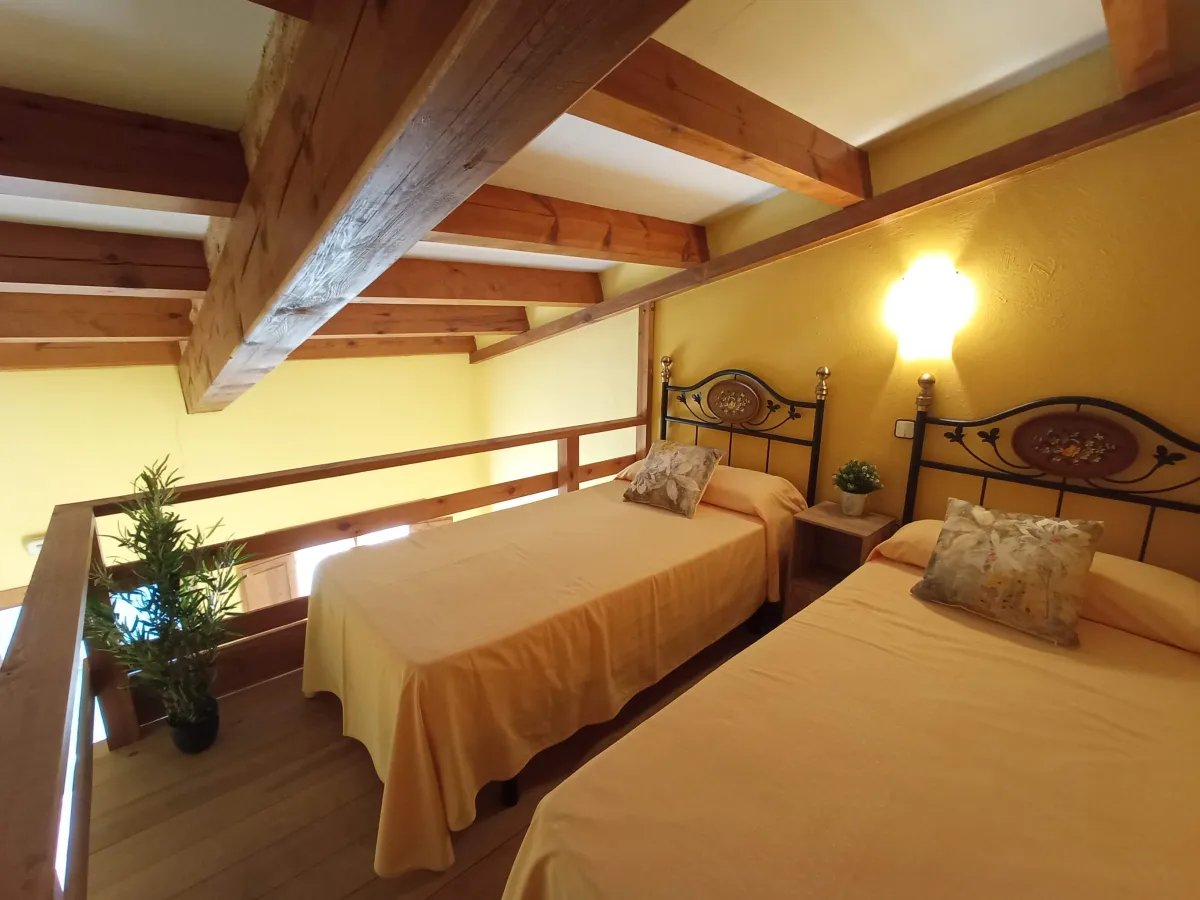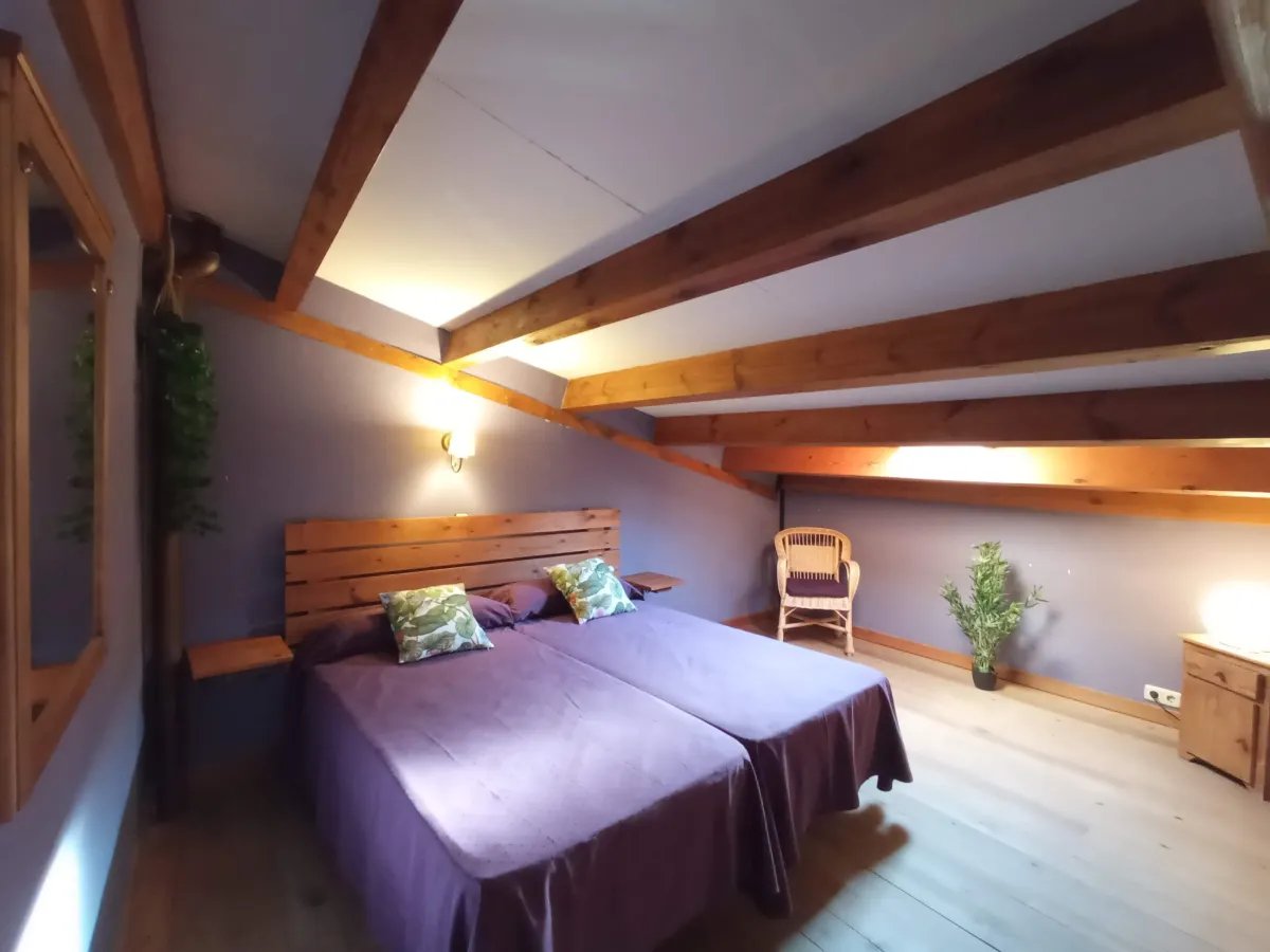 Por otro lado, la zona de descanso. Dónde se encuentran las 5 cabañitas independientes y con salida directa al patio de césped. Cada una con su baño y capacidad para 4 personas. Con una cama de matrimonio y 2 individuales, distribuidas en 2 alturas.