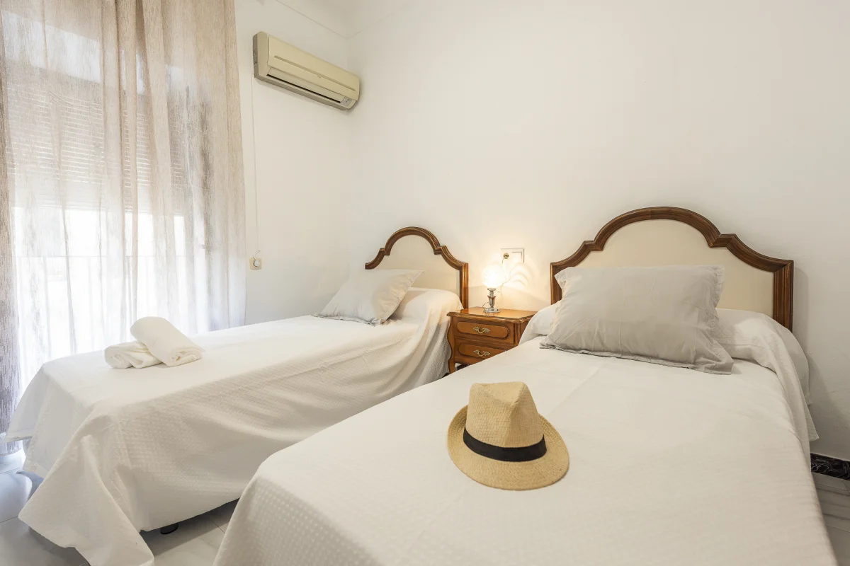 5 habitaciones con armarios, ventiladores de techo y aire acondicionado.