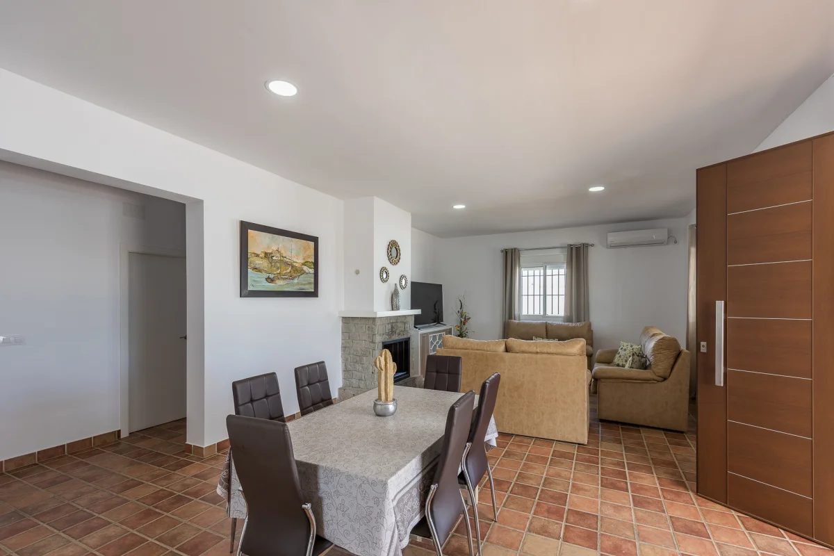 Amplio salón con chimenea de 45 m. sofás, aire acondicionado, Smart TV 55″, Wifi.