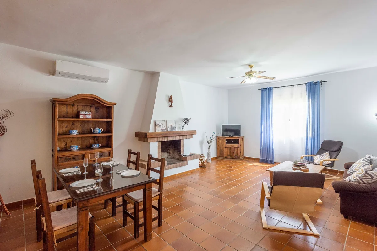 Amplio Salón Comedor de 33 m. con chimenea, TV de 32″, Wifi.