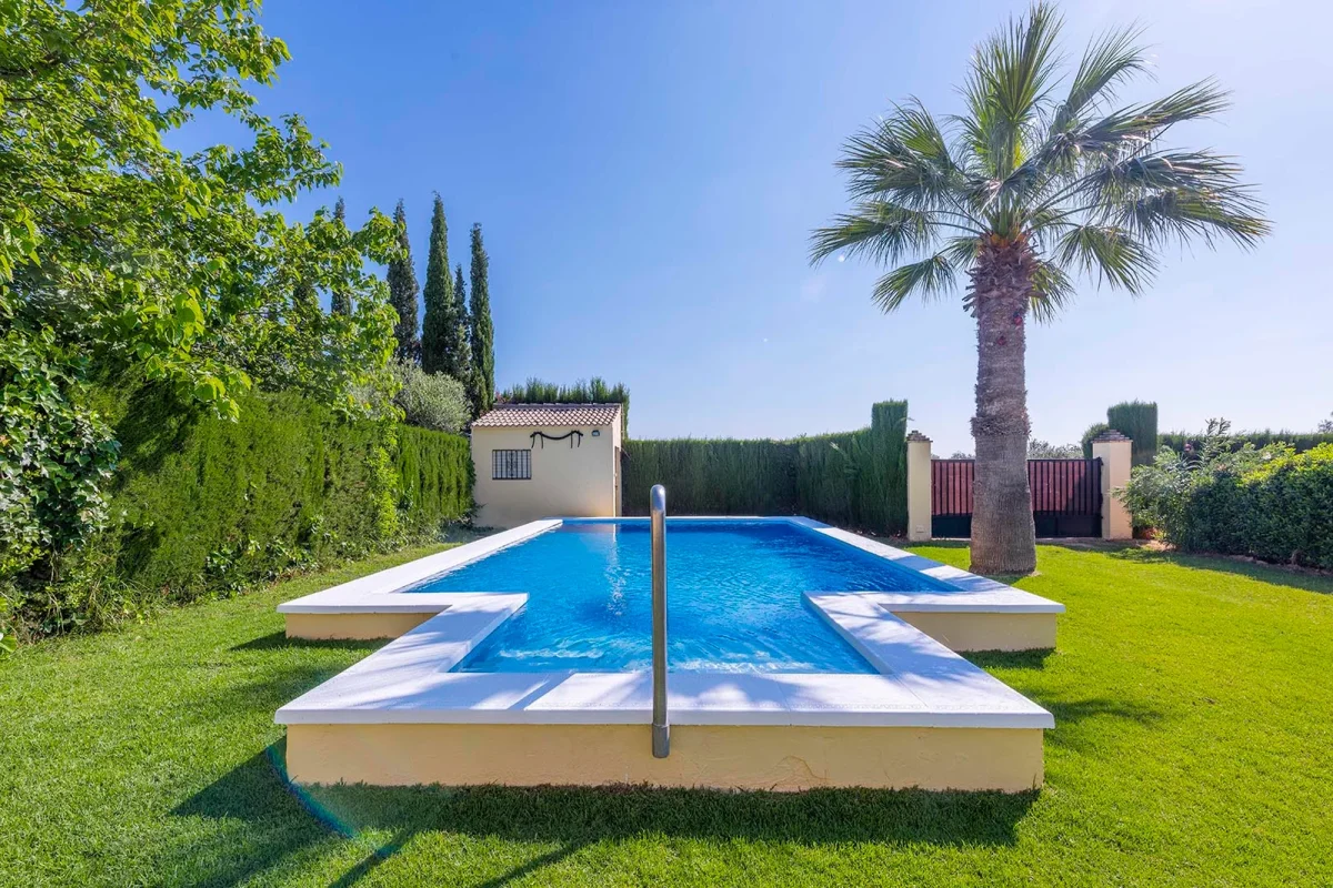 Piscina de 9 x 5,5 metros y profundidad 1,10 a 1,70 mts. entrada en escalera romana