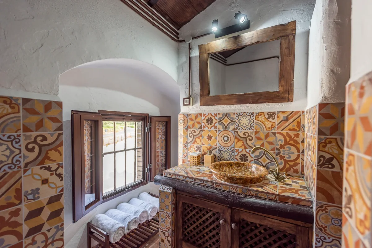 La casa con 6 habitaciones hasta 20 personas está construida en típica arquitectura Andaluza con toques árabes y mosaicos artesanales.