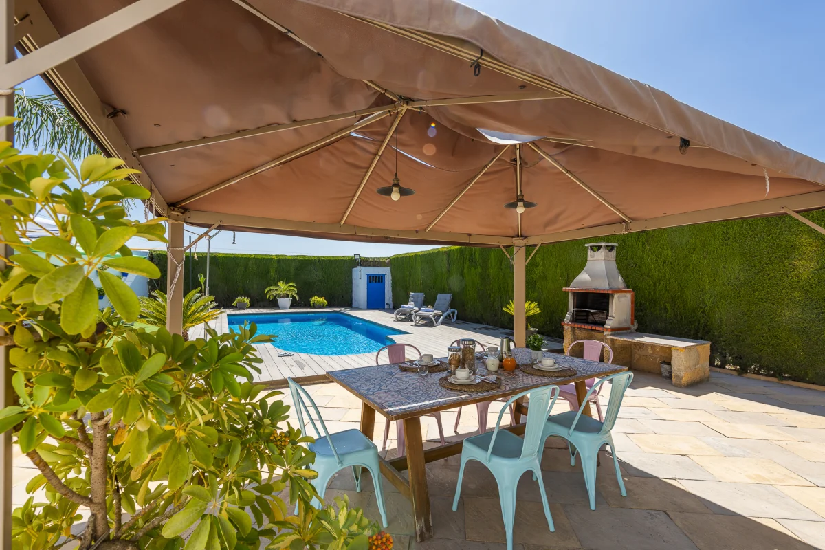 Pérgola de madera junto a barbacoa