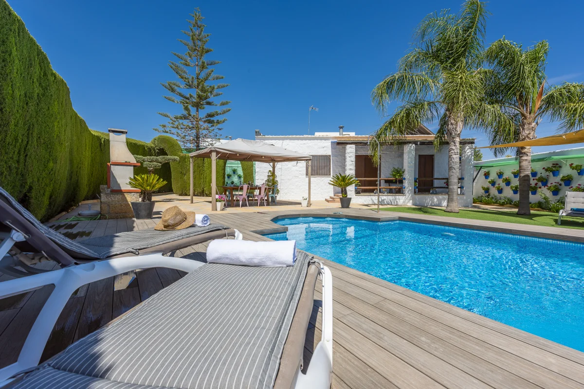 Agradable casa rural con piscina privada situada en el típico pueblo de la Campiña Sevillana. Hasta 7 personas en 3 habitaciones, pérgola, barbacoa, césped artificial,…