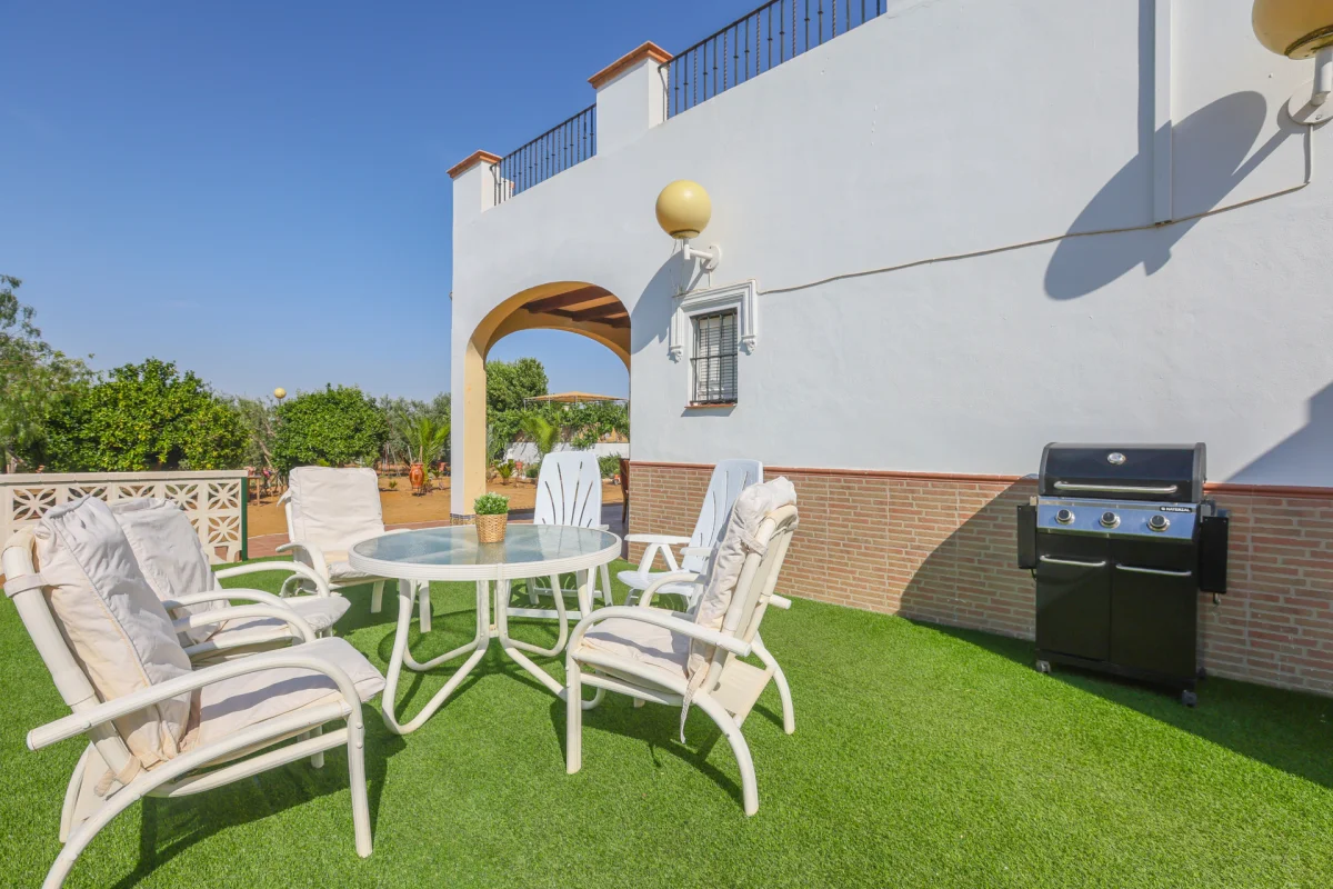 Casa rural de estilo rústico y rodeada de olivos, en la Campiña de Sevilla. Hasta 6 personas en 3 habitaciones.