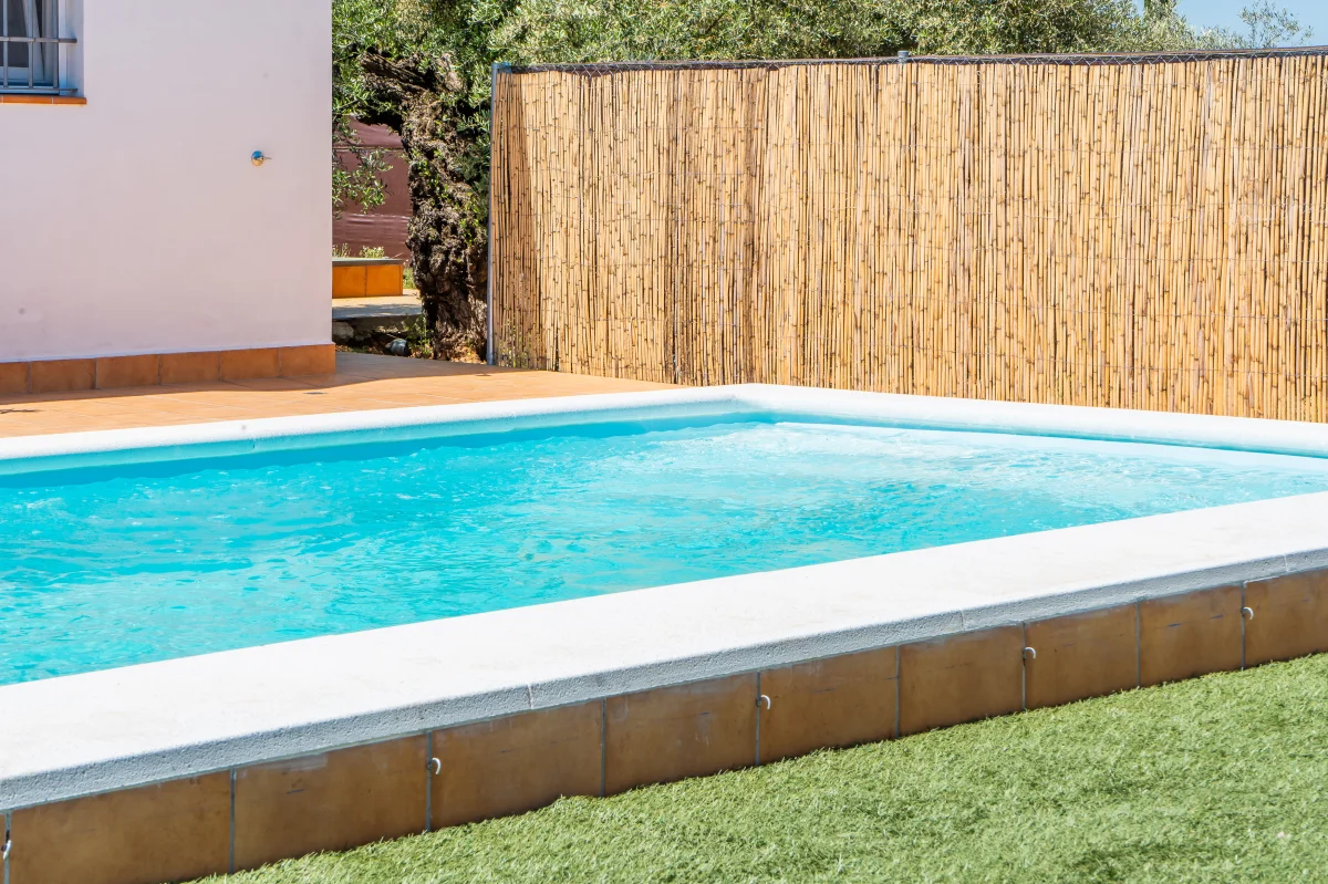 Piscina de 6 x 4 metros y profundidad 1,10 a 1,40 mts. entrada en escalera romana y asientos dentro de piscina.