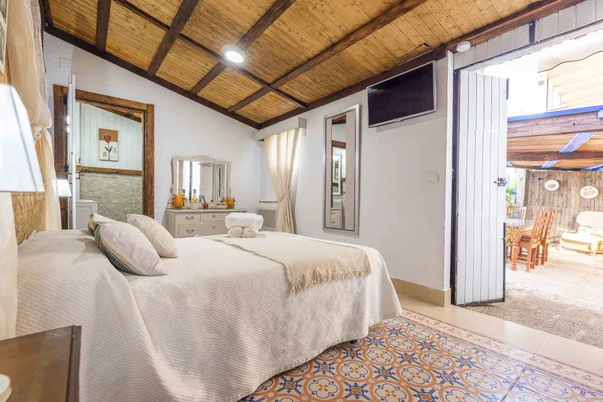 Habitación 1. Cama matrimonio 1,50 x 2,00 m con baño ensuite con bañera 1 cama supletoria 0,90 x 1.90 m. TV en dormitorio.