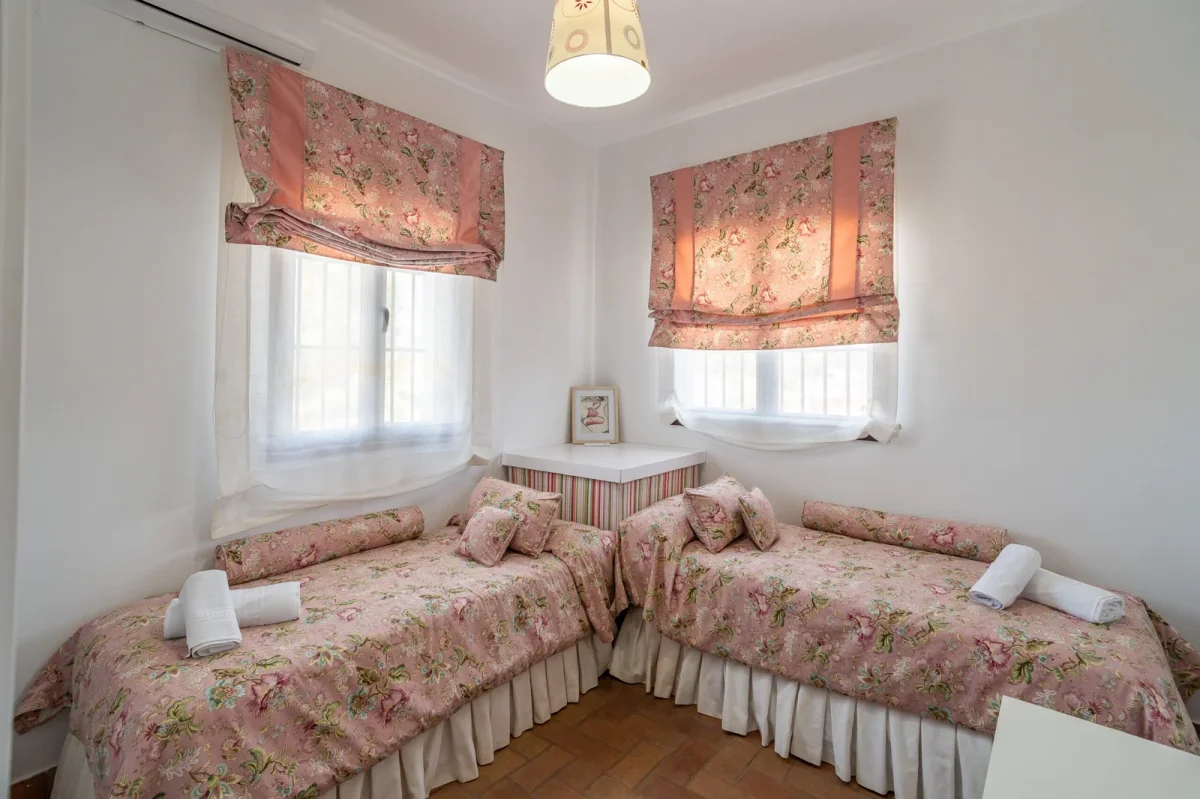 Habitación 1. 2 camas individuales de 0.90 x 1.90 m. con baño ensuite. Ventilador en techo (no a.a.)