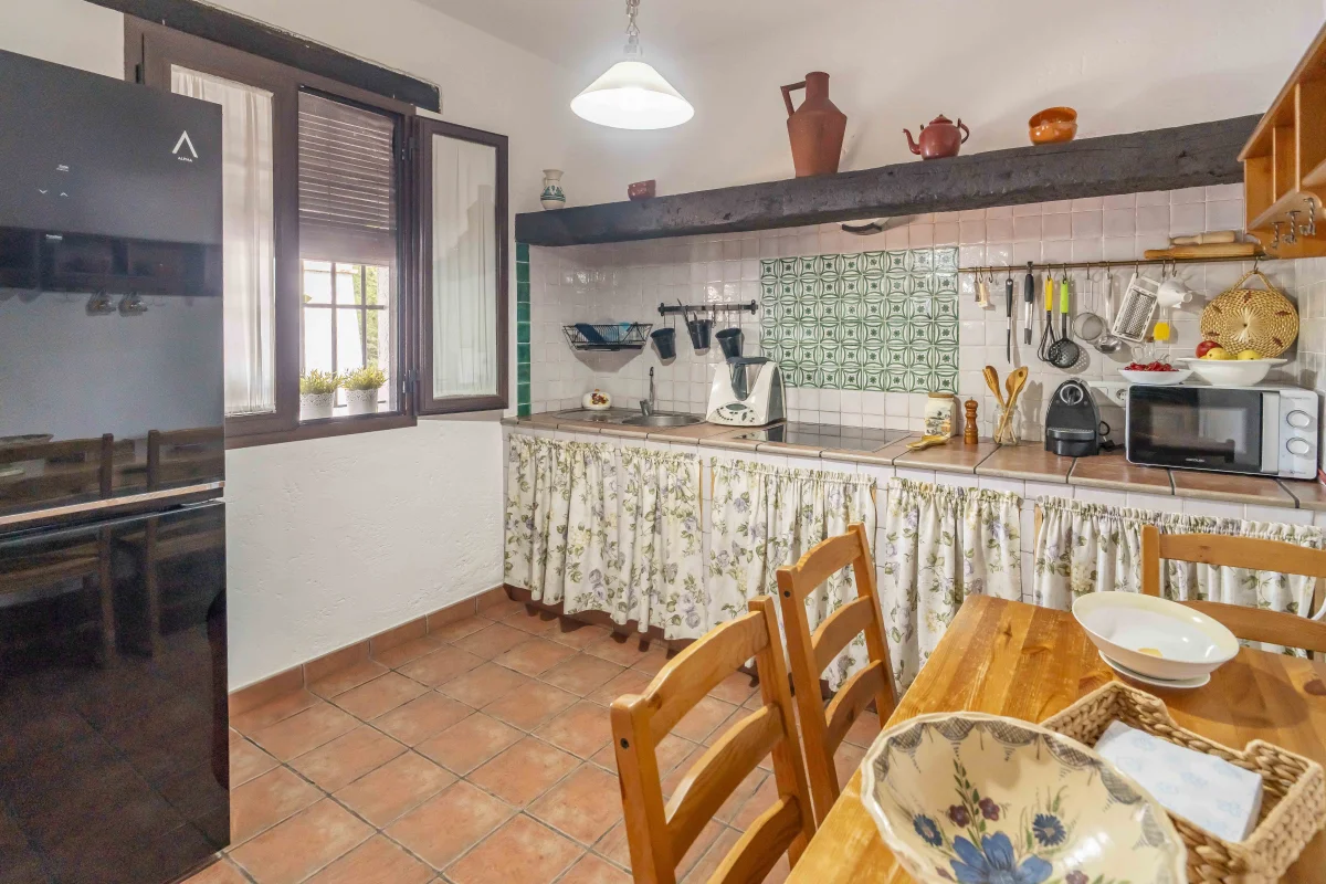 Cocina con vitrocerámica de 4 fuegos, microondas, tostadora, cafetera, frigorífico, lavavajillas…