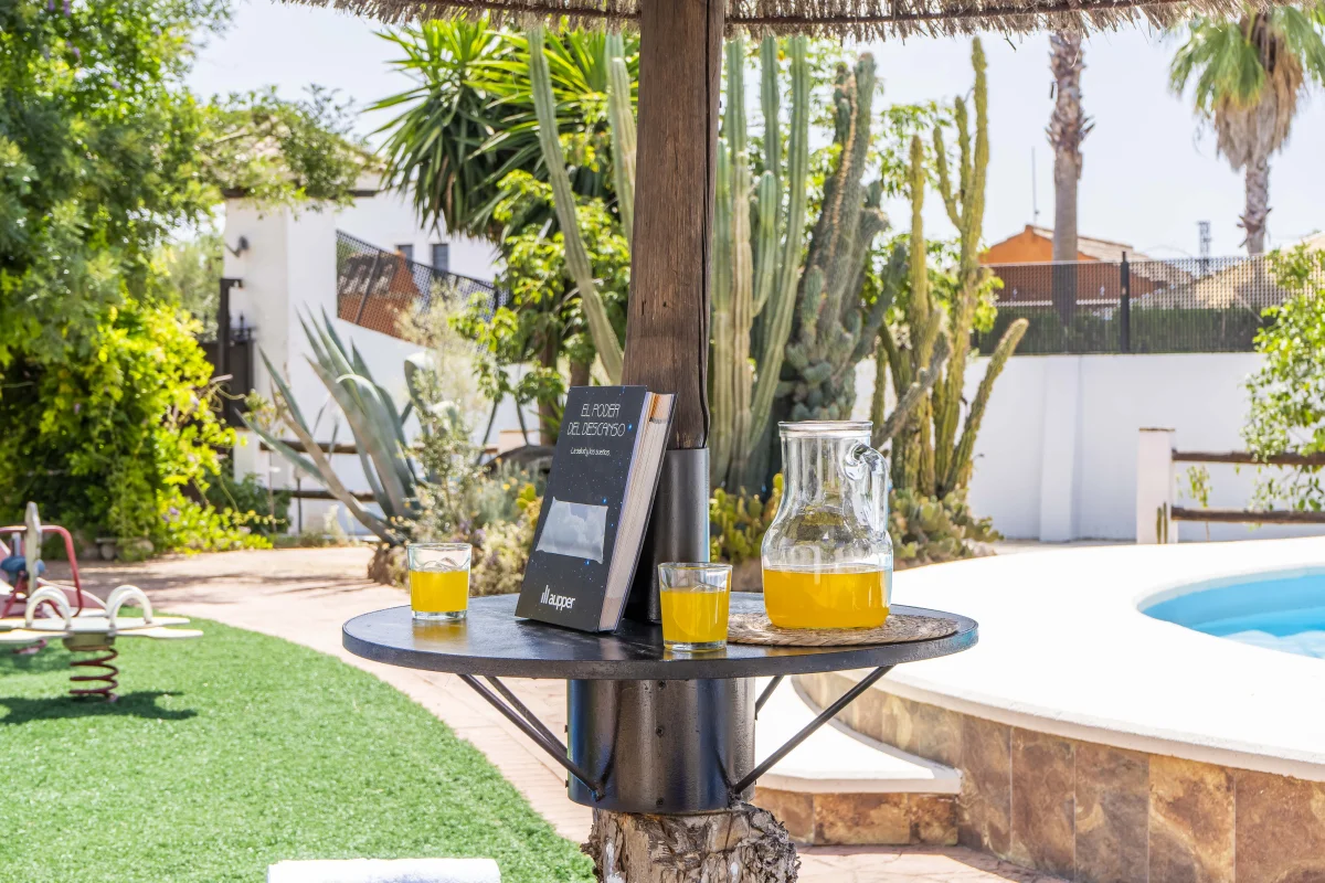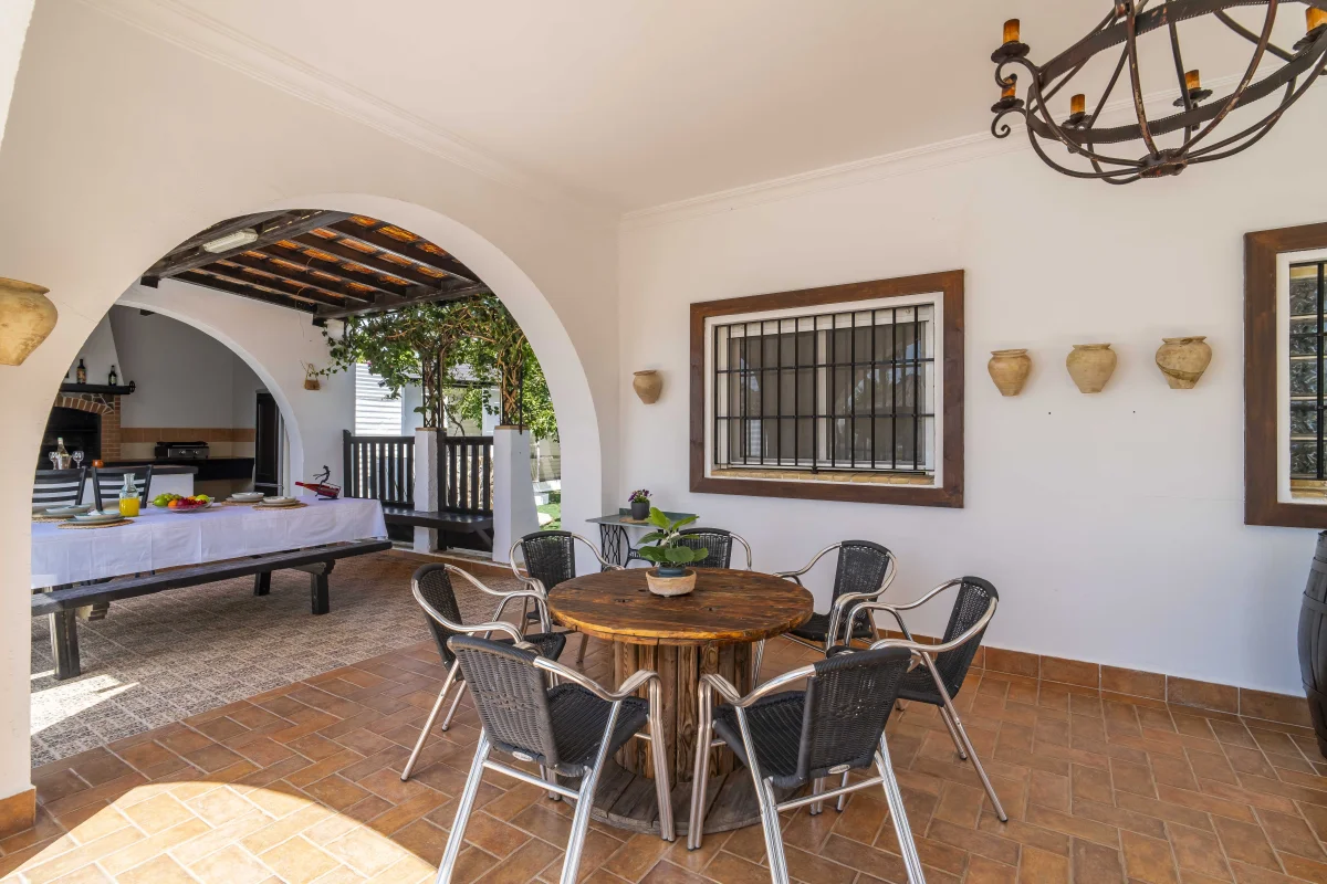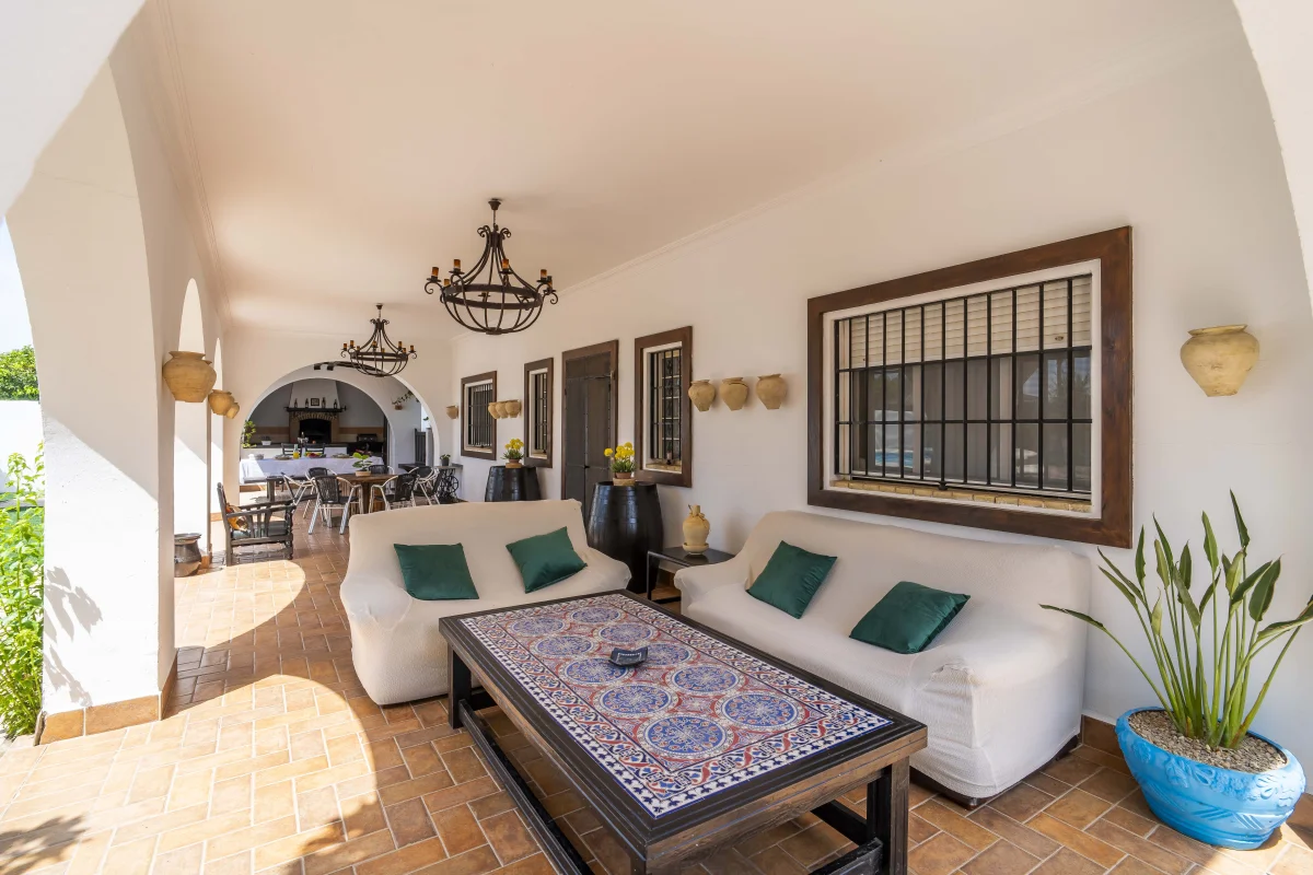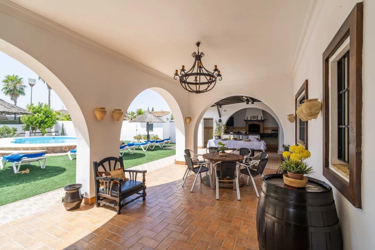 Gran Porche mirando a piscina y jardín