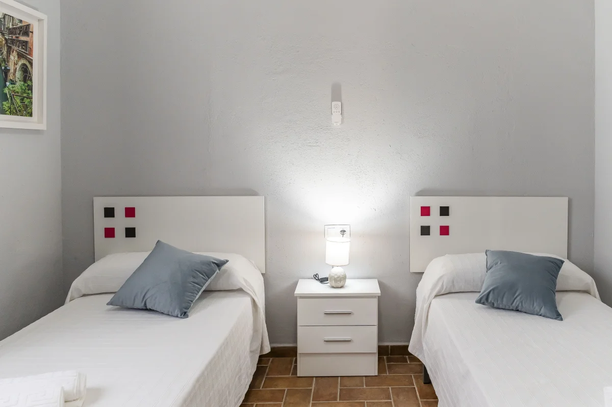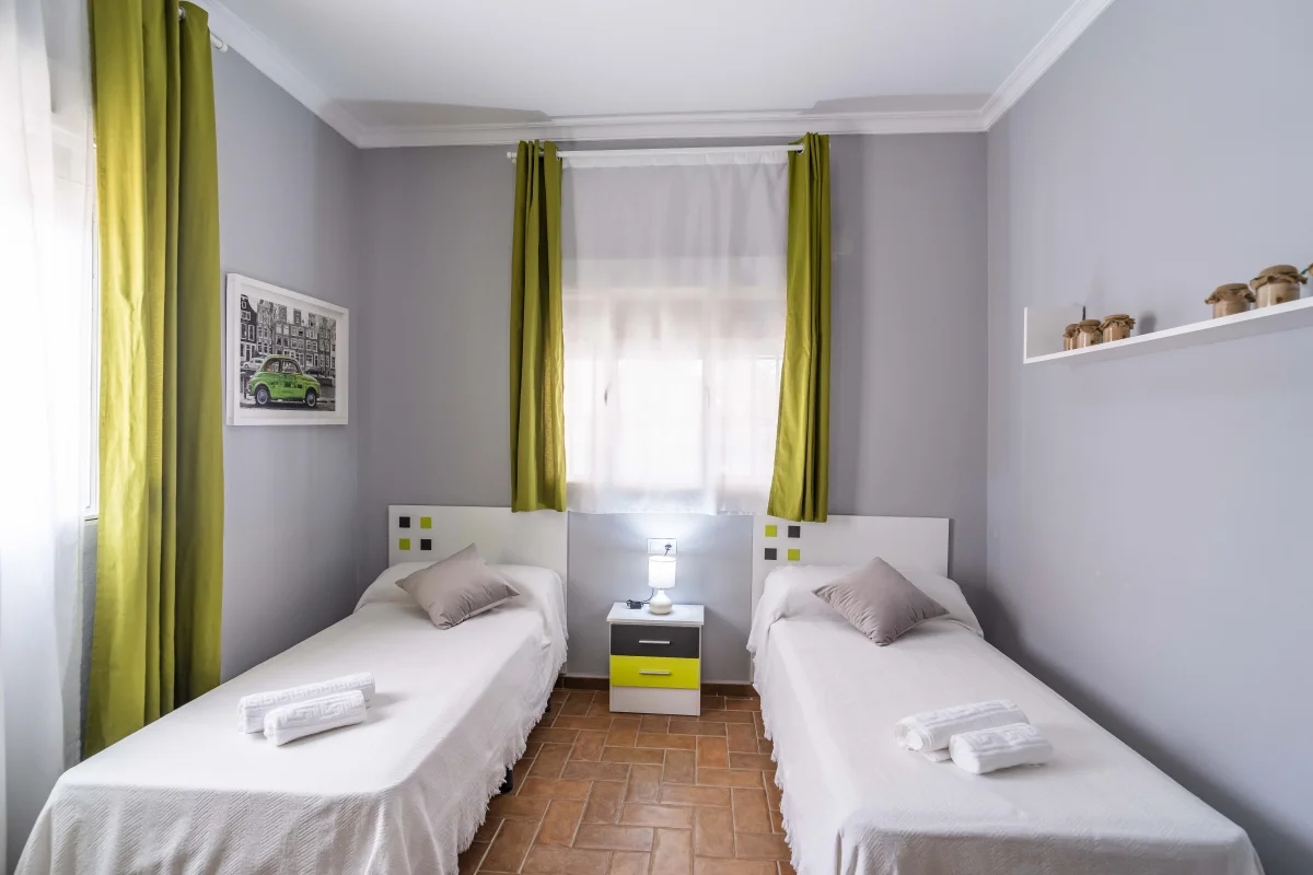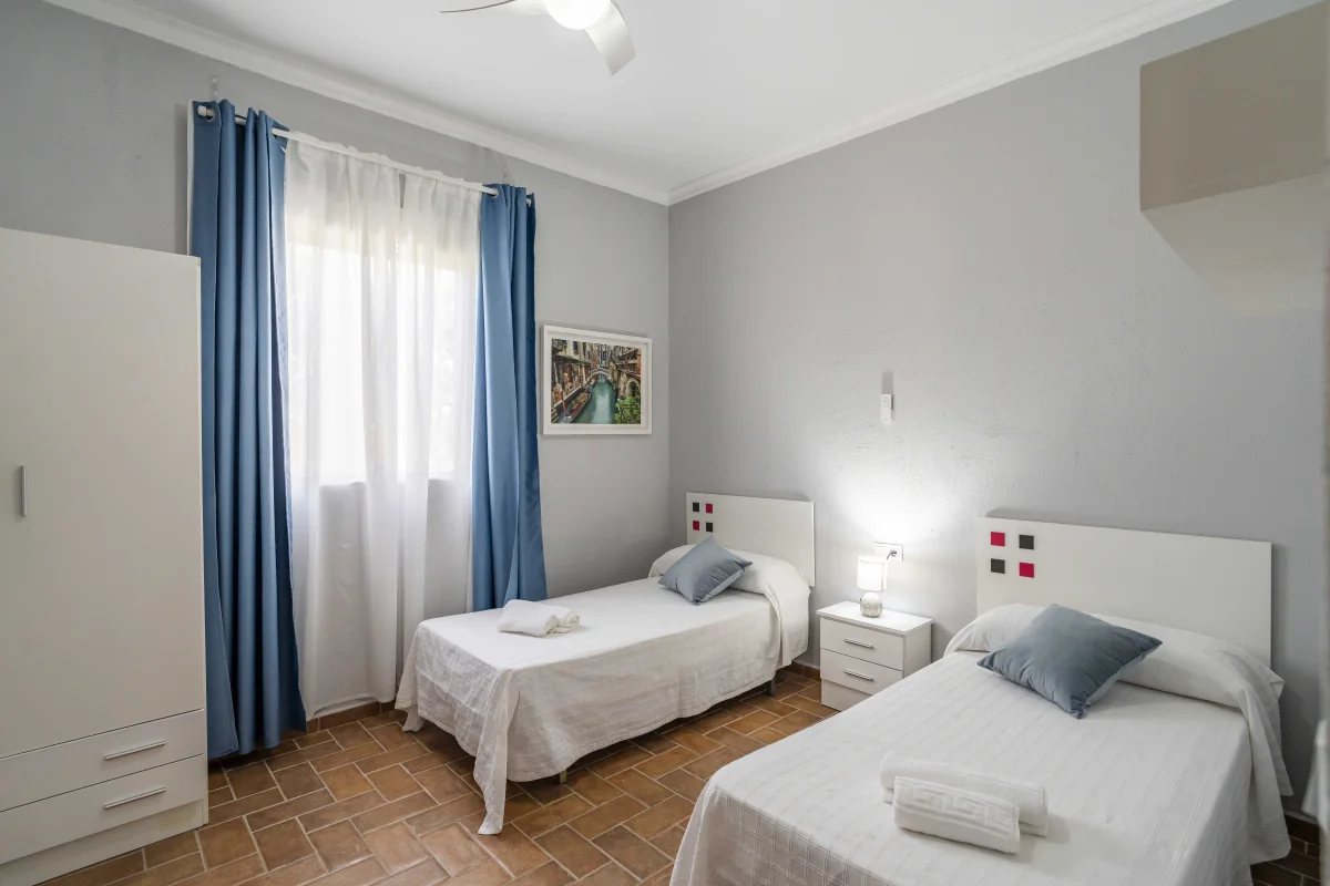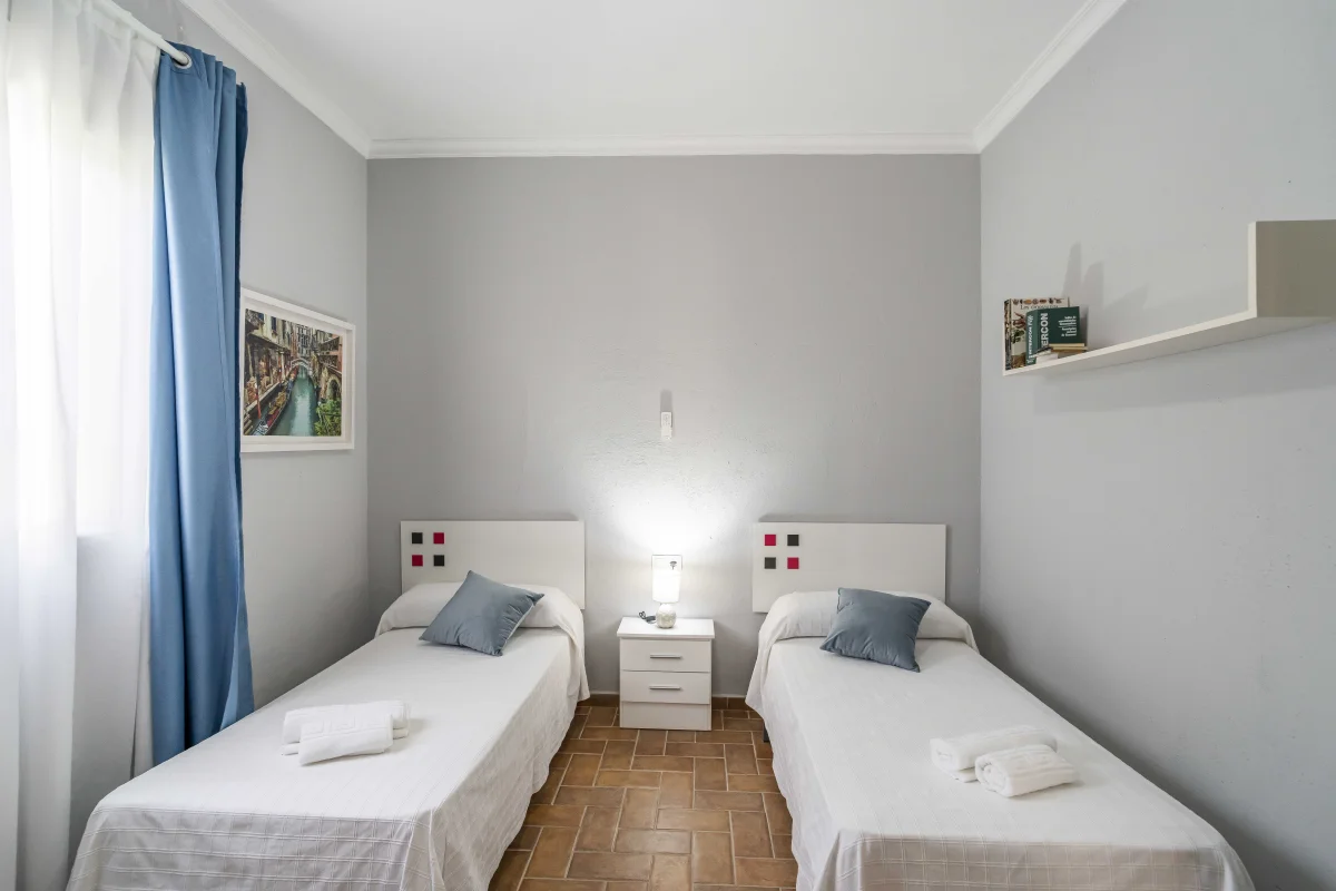 Habitación 1. 2 camas individuales de 0.90 m. x 1.90 m. (convertible en cama de matrimonio de 1.80 m. x 1.90 m.)