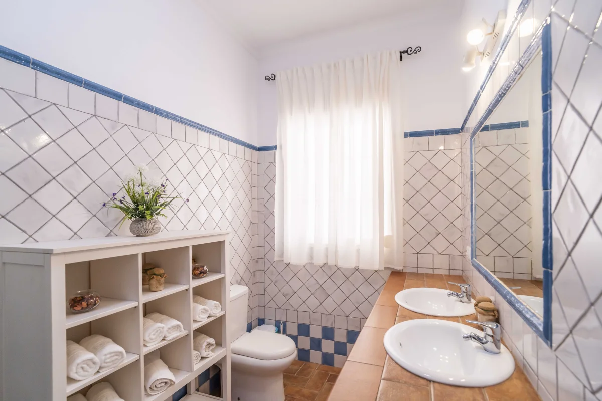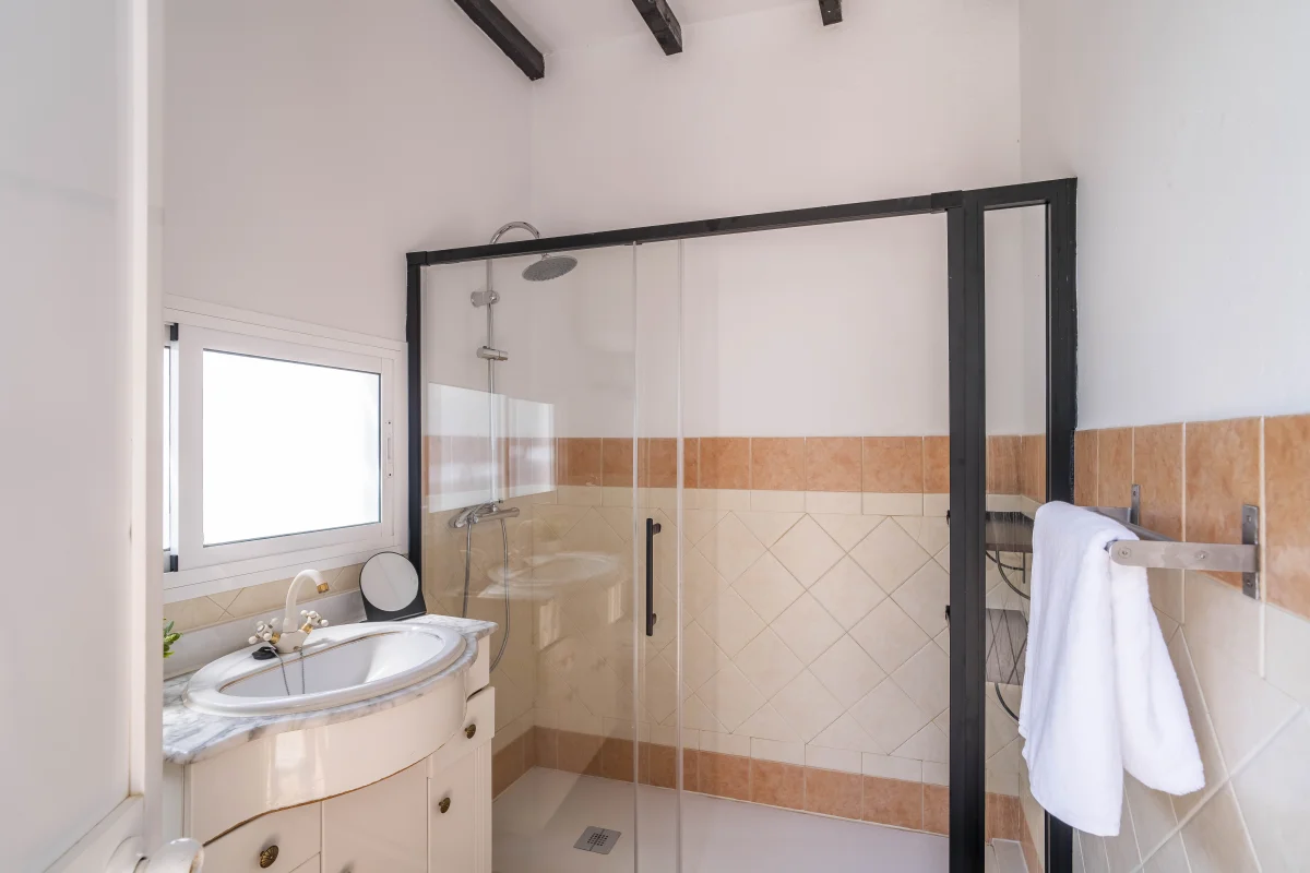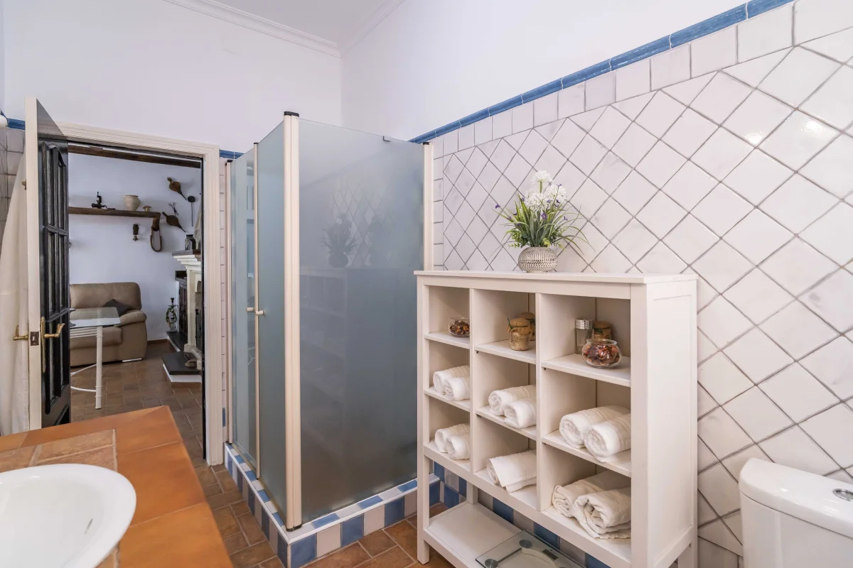 Baño con ducha zona porche y piscina.