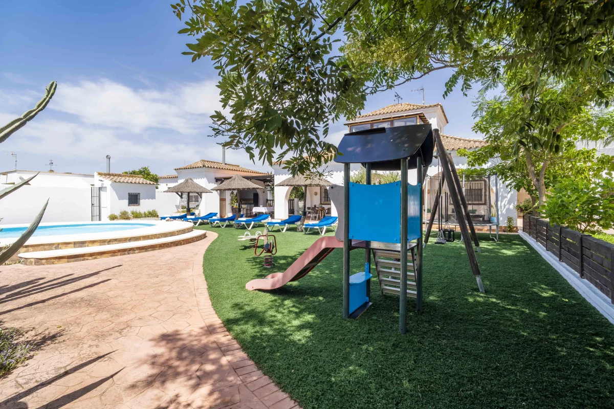 Zona de juegos para niños con columpio, tobogán,…