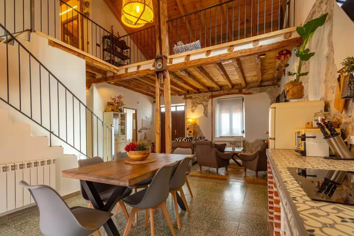 Ideal para escapadas en familia, reuniones con amigos o encuentros corporativos, la casa se alquila de forma íntegra y ofrece total privacidad. Con capacidad para hasta 12 personas, dispone de amplios espacios pensados para el descanso y la convivencia: salón con chimenea, cocina integrada, rincón de lectura, sala de jacuzzi y un pequeño gimnasio funcional.
